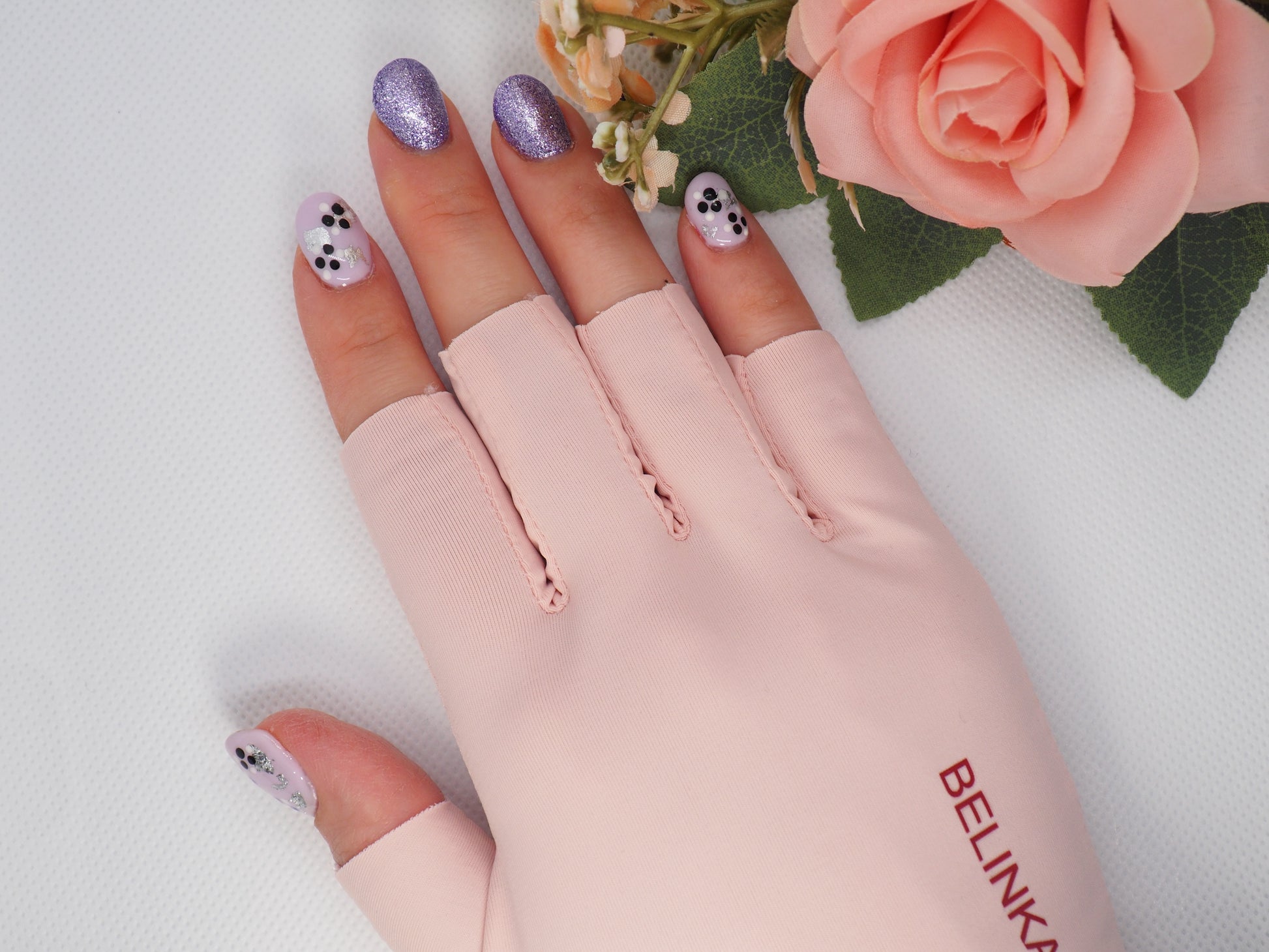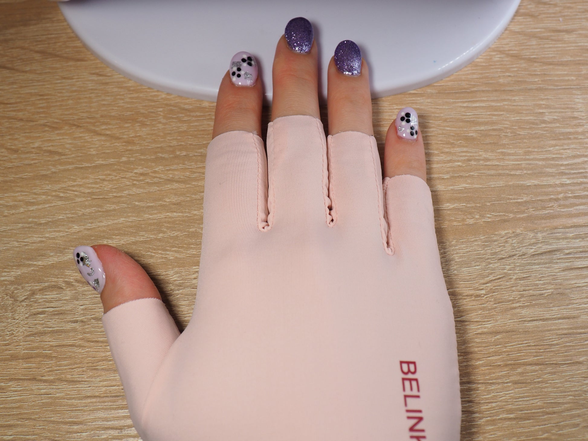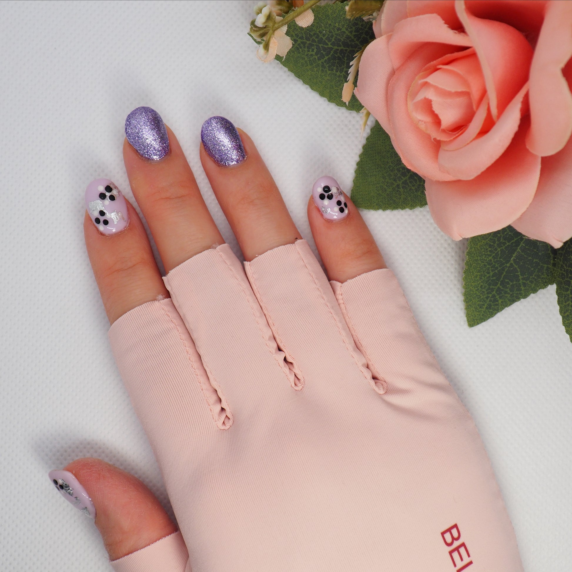 Fialové UV ochranné rukavice na manikúru s UPF 50+
